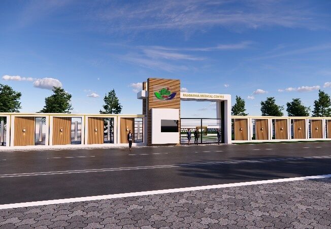 The completed gate and boundary wall redefine the campus edge with a strong architectural identity. The entrance structure balances minimal form with clear branding, making the medical centre instantly recognizable. Integrated lighting, clean vertical modules, and controlled material selection contribute to a secure, elegant, and well-organized campus frontage, reinforcing trust and visual appeal for patients and visitors.