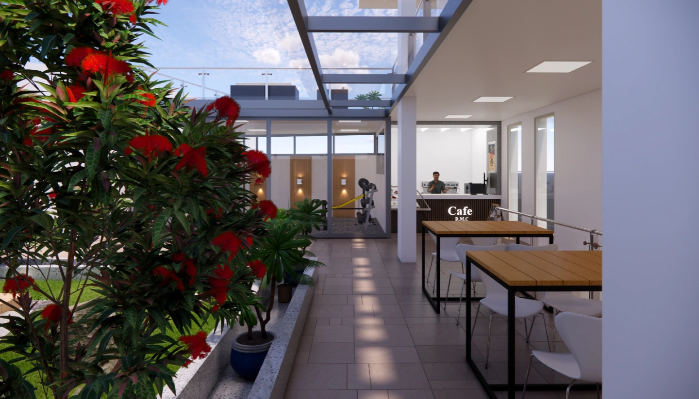 The Rahmania Medical Centre campus development integrates modern architecture, human-centric interiors, efficient clinical planning, and refreshing recreational spaces. Our multidisciplinary involvement spans the reception building, diagnostic tower, administrative interiors, café design, campus entry development, and rooftop environments. Every component is planned with a clear intention to elevate user comfort, enhance hospital workflows, and establish a unified and premium campus identity.